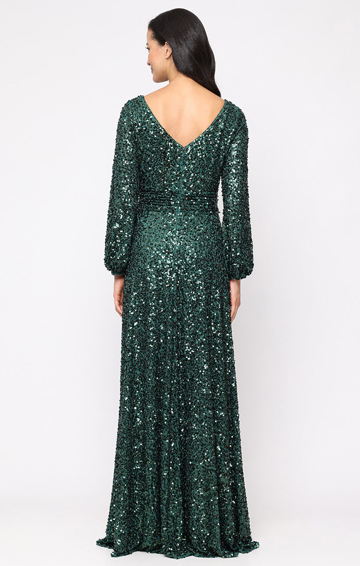 Long Sequin A-Line Gown with Long Bubble Hem Sleeves