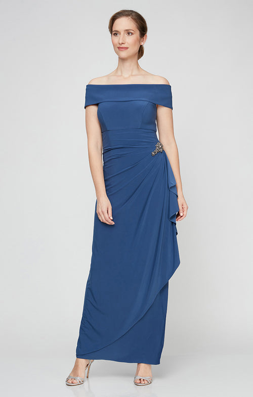 Floral Metallic Brocade Off-the-Shoulder Ballgown with Pockets