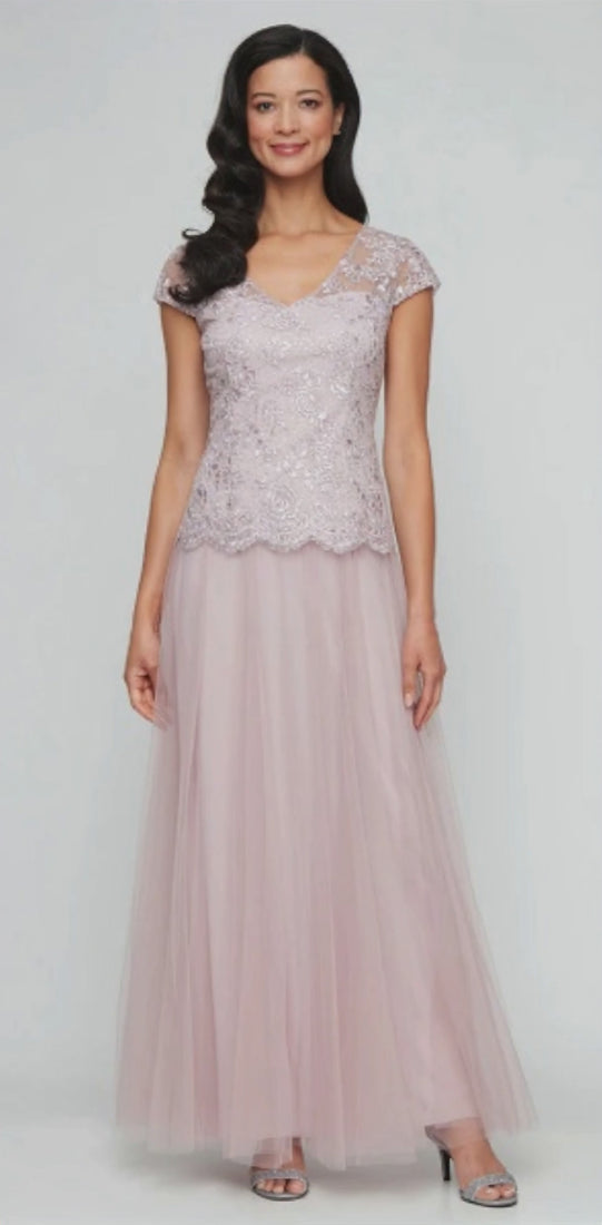 Regular - Long Embroidered Mock Dress with V-Neckline, Cap Sleeves and Full Tulle Skirt
