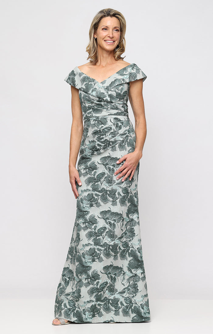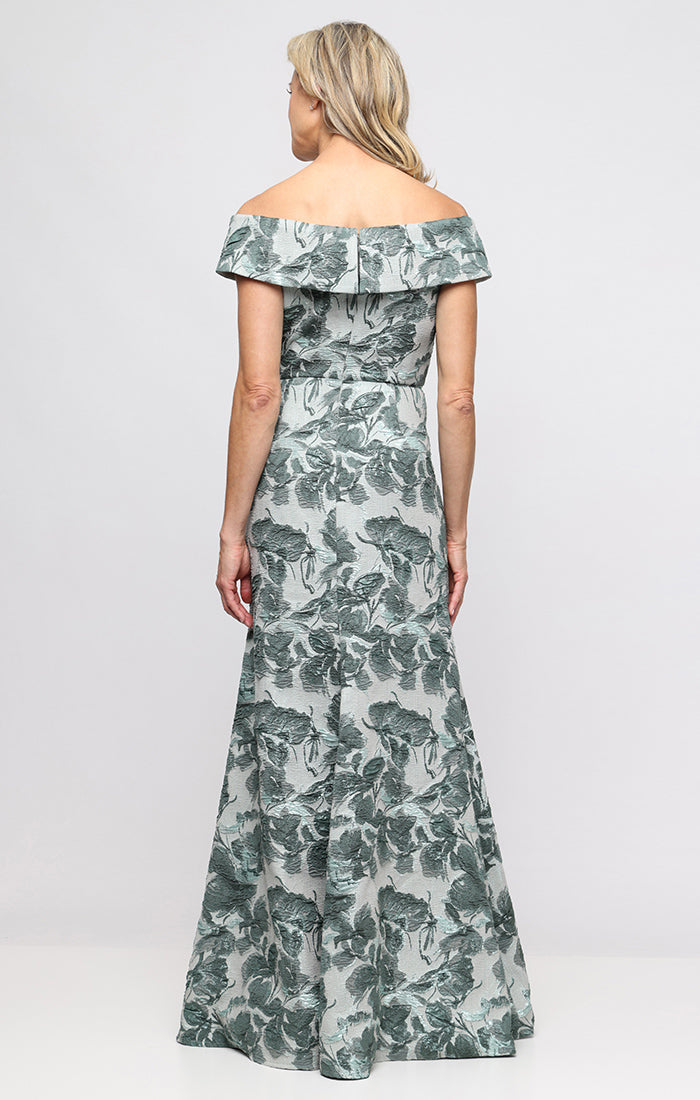 Petite Off-the-Shoulder Floral Jacquard Ballgown