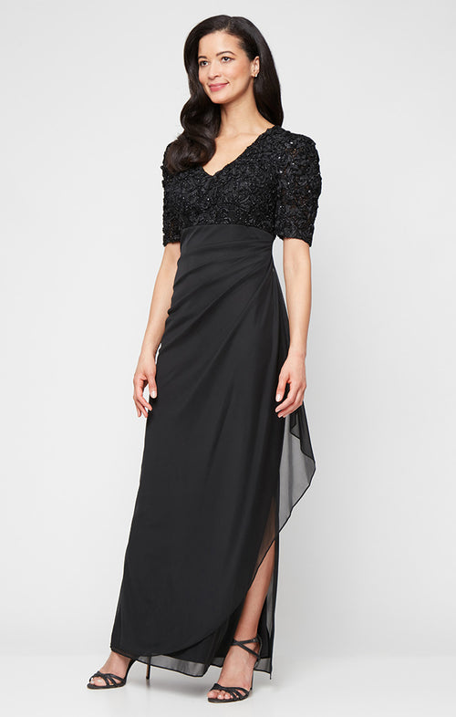 Petite Evelyn Rosette Lace Long Gown
