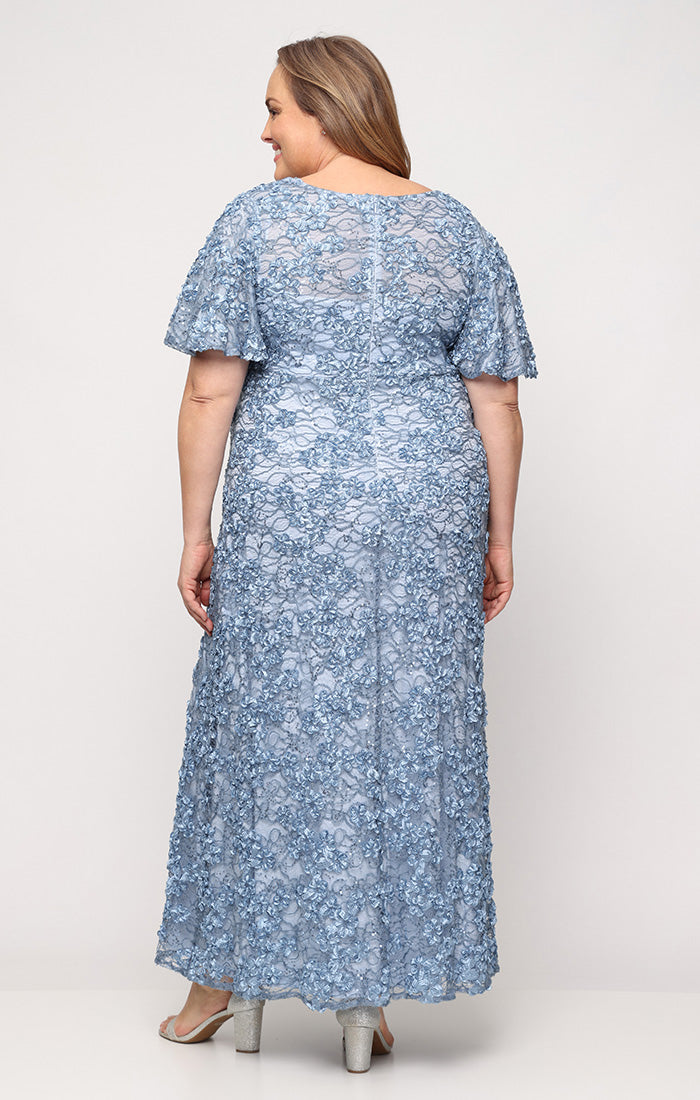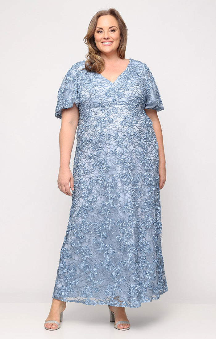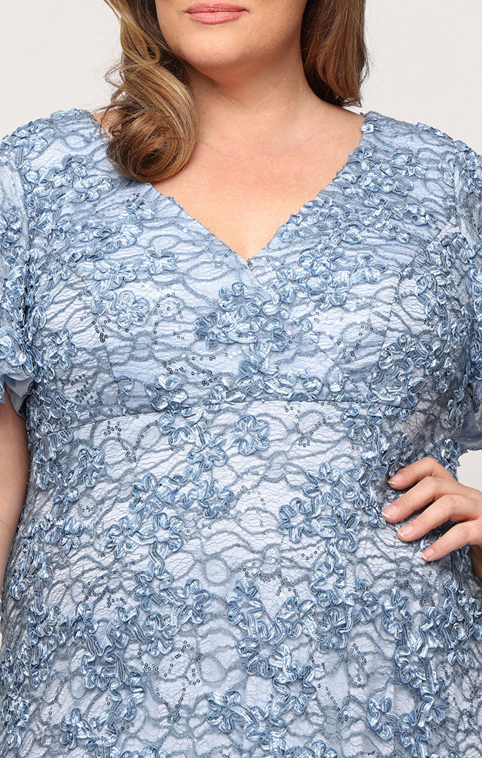 Plus Long Soutache Empire Waist Dress with Surplice Neckline