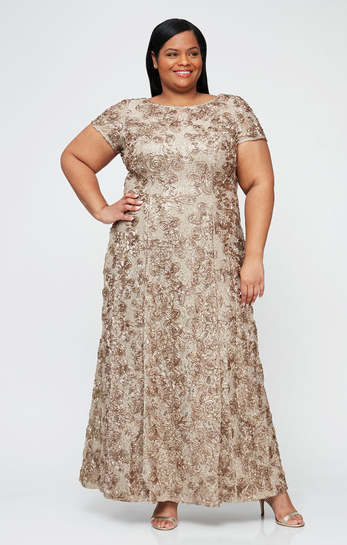 Plus Long Gown with Sequin Lace Bodice & Chiffon Skirt