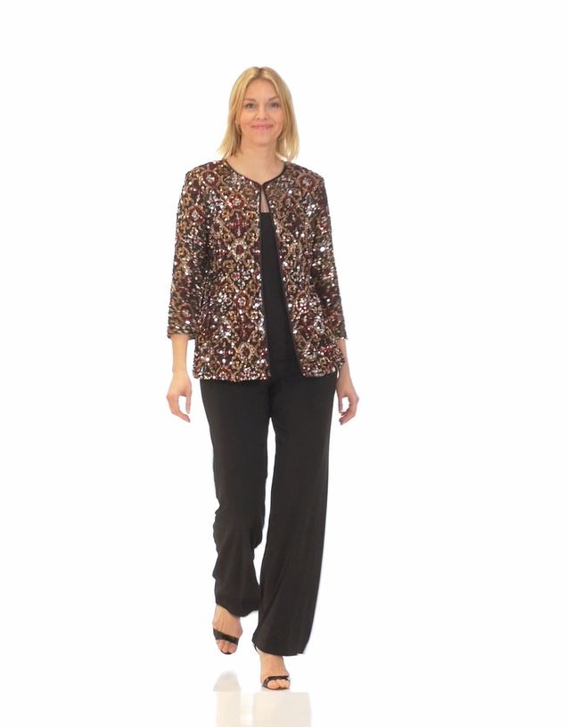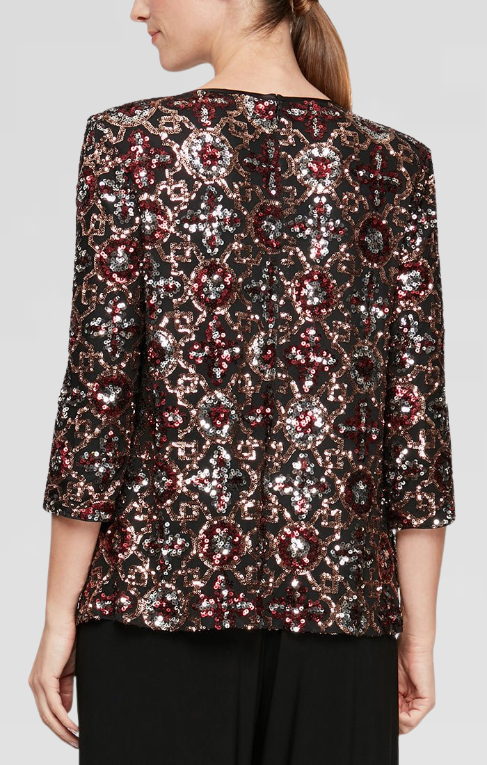 Mock Twinset With Attached Sequin Jacket and Solid Jersey Cami