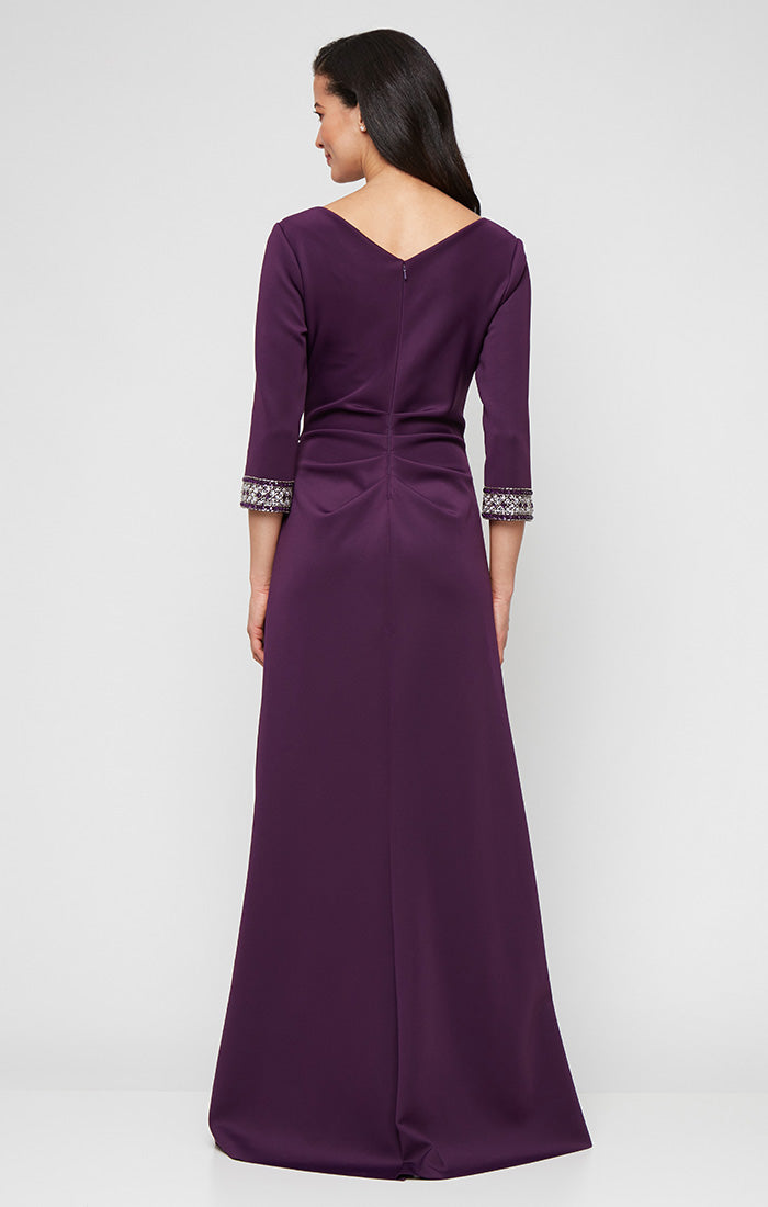 Petite - Crepe Dress with Embellished Sleeve Detail and Tulip Skirt