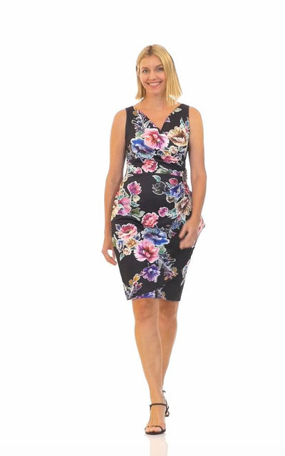 Regular - Short Printed Sheath Dress With Surplice Neckline, Beaded Hip and Cascade Skirt Detail